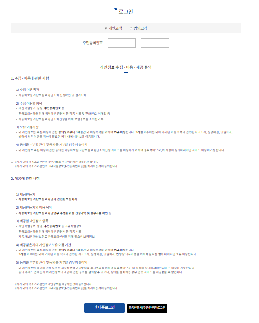 - 본인의 공동인증서(구 공인인증서), 휴대폰인증을 통하여 조회 가능