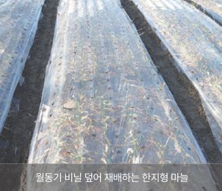 생육재생기에는 비닐 걷는 시기도매우 중요합니다. 급격한 온도변화는 마늘, 양파의 잎줄기를 마르게 하고, 충분한 잎 수 확보를 방해해 수량감소로 이어지기 때문입니다.
