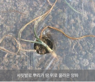 서리발피해는 뿌리가 충분히 뻗지 못한 재배지에서 땅이 얼었다가 녹으면서 부풀어 올라 땅속의 뿌리기 들떠 공기와 맞닿아 생기는데, 그냥 두면 작물이 말라죽네요.