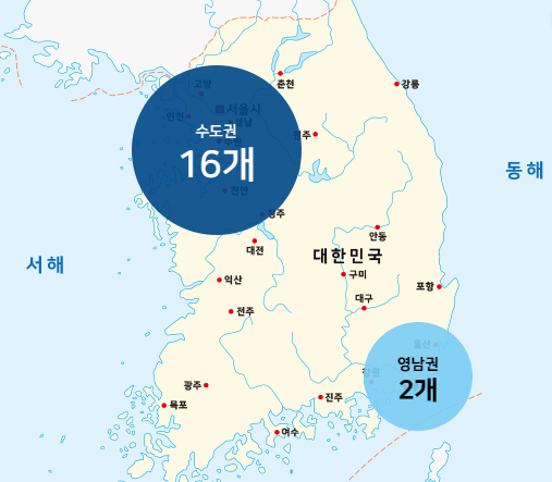 ● 총 18개 자산(이천 6, 7 포함)으로 (도심권 2, 수도권 14, 부산권 2) 총 연면적 1,158,231m² 규모