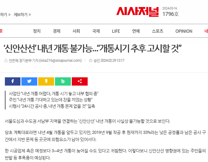 한 언론사에서 취재 결과 개통시기가 연기될 것으로 보도를 했네요. 아직 확실하게 발표된 내용은 2025년 4월 준공으로 개통시기가 변경되면 추후에 고시 등을 통해 발표될 것으로 보이네요.